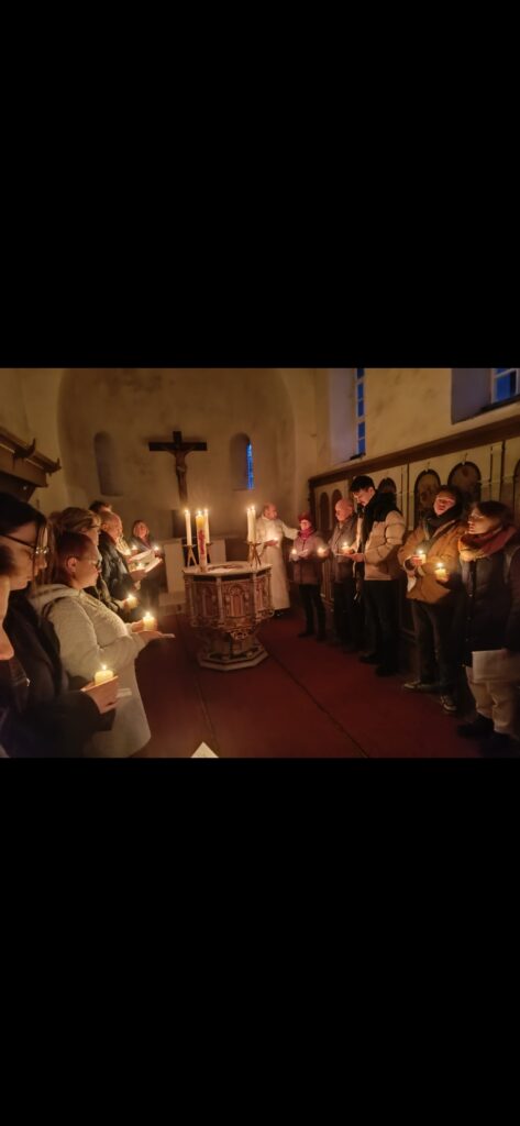 am Ostermorgen um 5:30 Uhr treffen wir uns am Osterfeuer vor der dunklen Kirche, entzünden die Osterkerze und ziehen in die Kirche ein. Dann leuchten immer mehr Kerzen, die Orgel erklingt und die Sonne erhellt die Kirche und den Friedhof. Anschließend Osterfrühstück im Gemeindehaus.